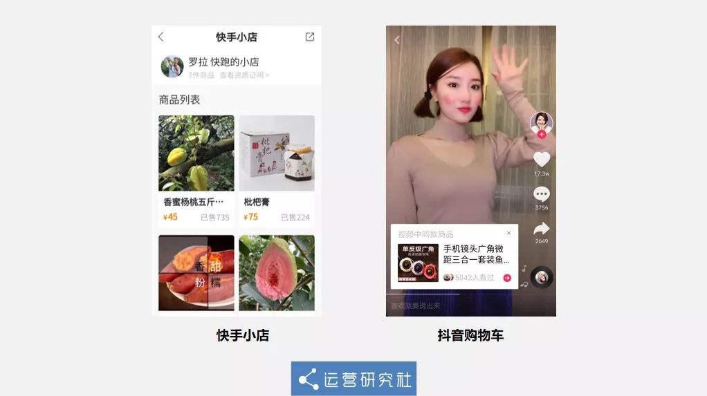 除了淘寶直播的賦能,快手和抖音也在去年12月分別推出了“快手小店”和“抖音購(gòu)物車”,幫助平臺(tái)博主實(shí)現(xiàn)短視頻賣貨。
